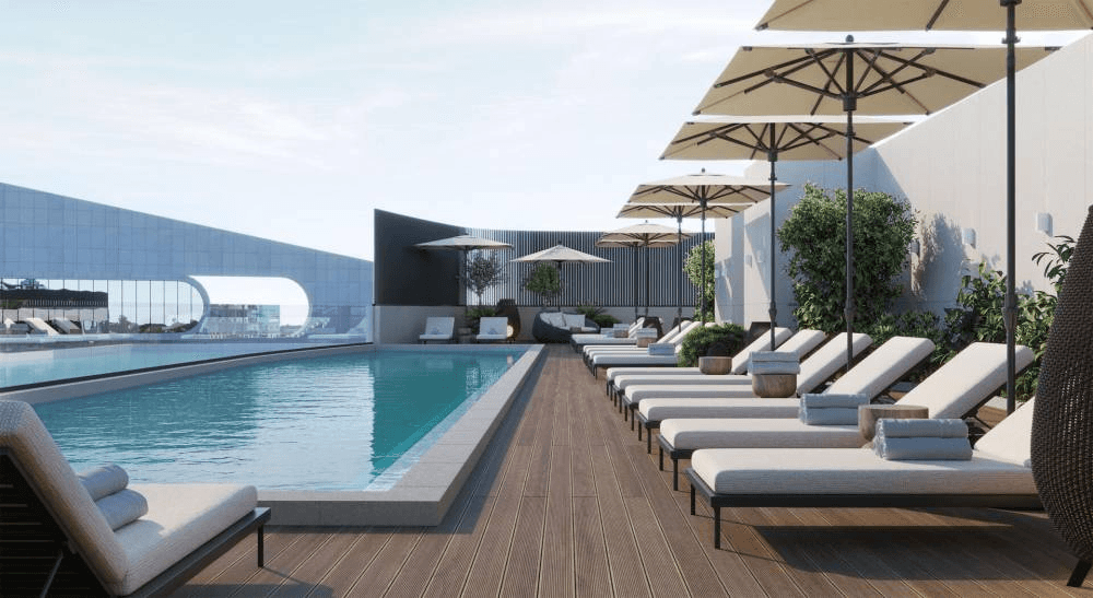 A 22-storey lake-front residential tower in Dubai Sports City offering modern luxury living, large windows, contemporary finishes, premium amenities including health club and rooftop infinity pool.
