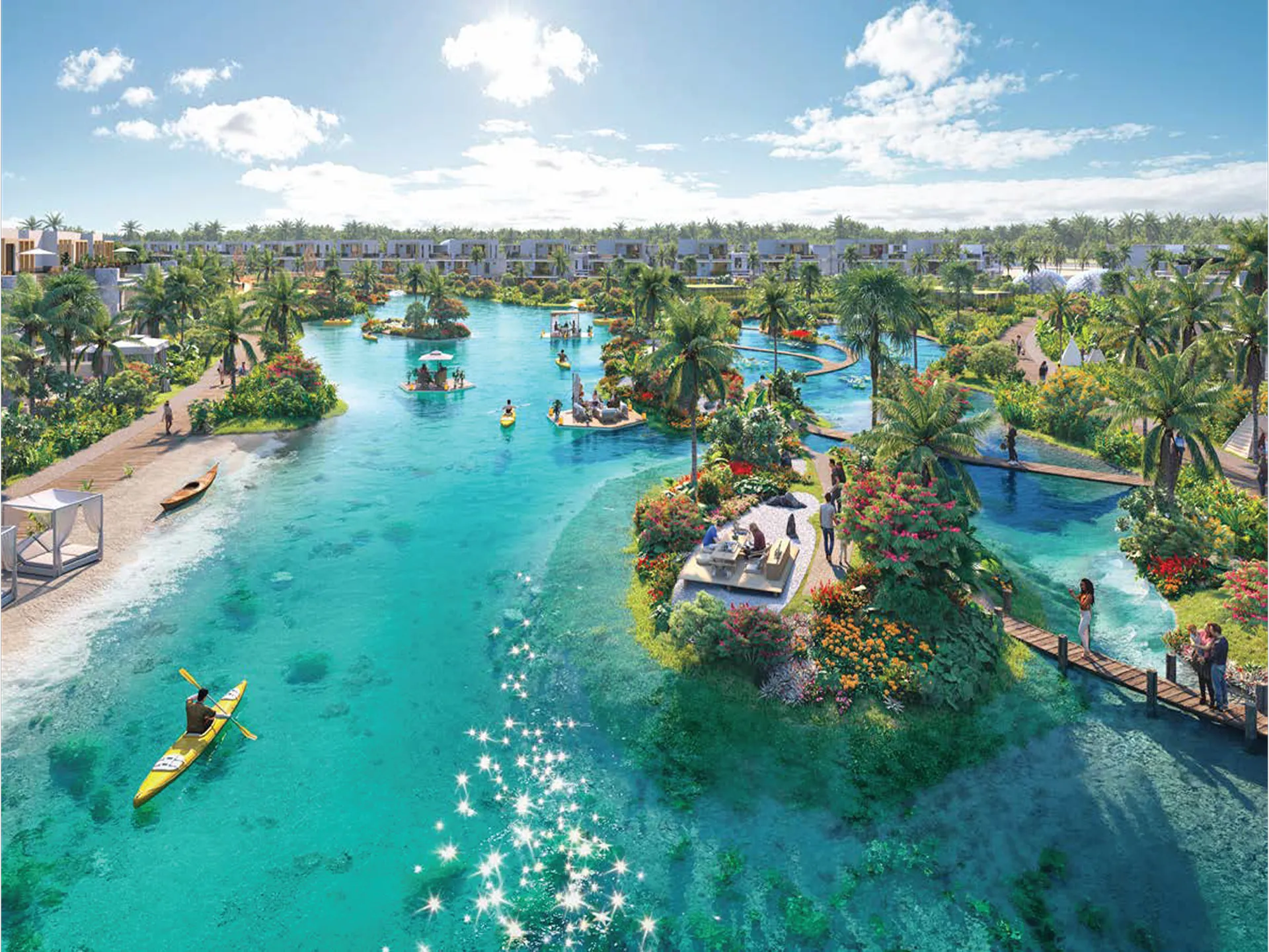 Yes, one of its standout aspects is the inclusion of lagoon-style water bodies and waterfront activities like kayaking and leisure zones. Having such resort-style water features within a villa community is considered a rare lifestyle addition in this segment.